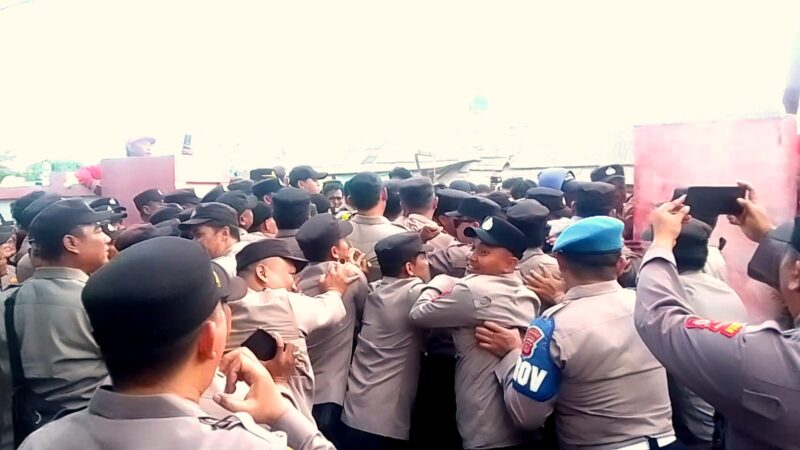 Pantauan di lapangan, aksi unjuk rasa berlangsung di bawah pengawalan ketat aparat kepolisian dan TNI. Meski sempat terjadi saling dorong antara peserta aksi dan petugas, situasi secara umum tetap kondusif.