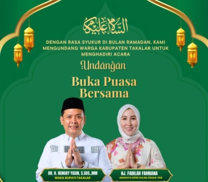 TAKALAR – time Indonesia.com | Dalam rangka mempererat tali silaturahmi di bulan suci Ramadan 1447 Hijriah, Wakil Bupati Takalar, H. Hengky Yasin, S.Sos., M.M, bersama Anggota DPRD Provinsi Sulawesi Selatan dari Fraksi PKB, Hj. Fadilah Fahriana, mengundang masyarakat Butta Panrannuangku untuk menghadiri acara buka puasa bersama.