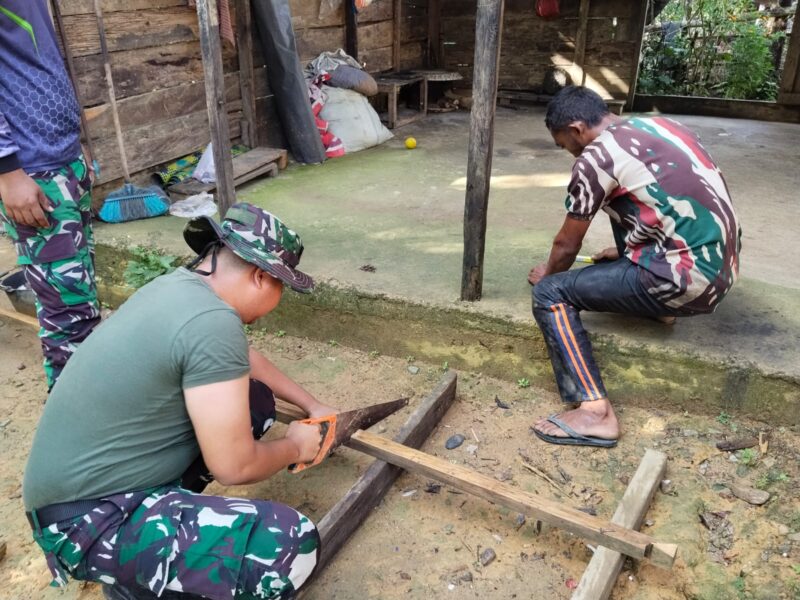 Sejak pagi, personel Satgas TMMD bersama warga bahu-membahu merobohkan bagian rumah yang telah lapuk. Tanpa sekat, mereka bekerja bersama, mempercepat tahapan awal rehabilitasi rumah tidak layak huni (RTLH) milik lansia tersebut.