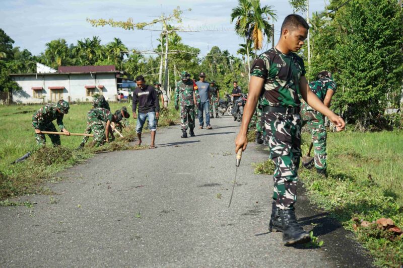 TimeIndonesia –  Memanfaatkan momentum hari libur aktivitas pada Jumat, Satuan Tugas (Satgas) TNI Manunggal Membangun Desa (TMMD) ke-128 Kodim 0110/Abdya menggelar gotong royong membersihkan bahu jalan serta lokasi kenduri tradisi desa “syukuran bungong kayee” di Desa Gunung Cut, Kecamatan Tangan-Tangan, Jumat (24/4/2026).