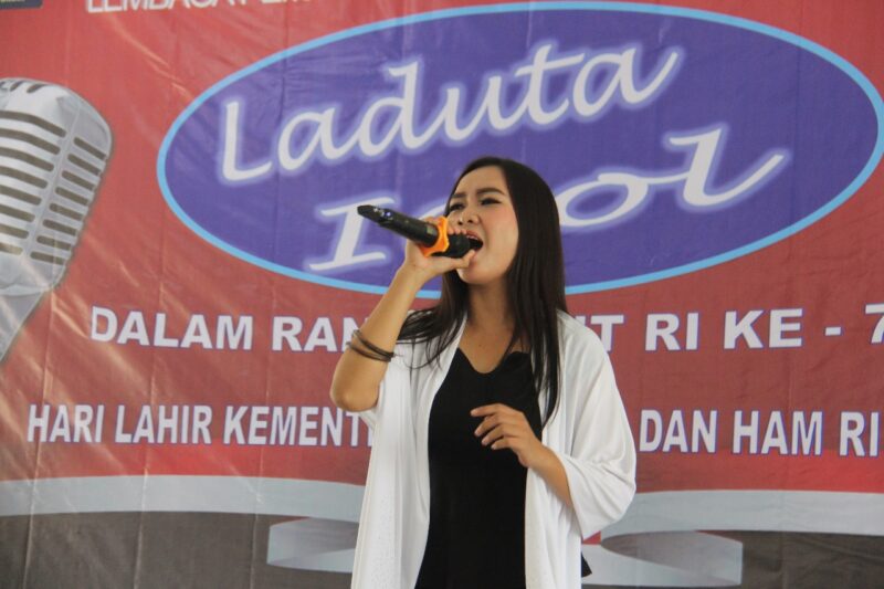 Lembaga Pemasyarakatan (Lapas) Kelas IIA Tangerang Kantor Wilayah Kemenkumham Banten memeriahkan HUT RI dan HUT Kemenkumham Ke-78 Tahun 2023 dengan penutupan perlombaan yaitu diselenggarakannya Laduta Idol bagi Warga Binaan Pemasyarakatan (WBP), pada Kamis (24/8).