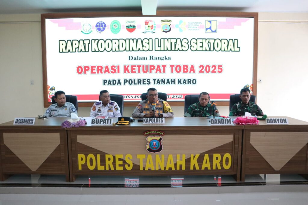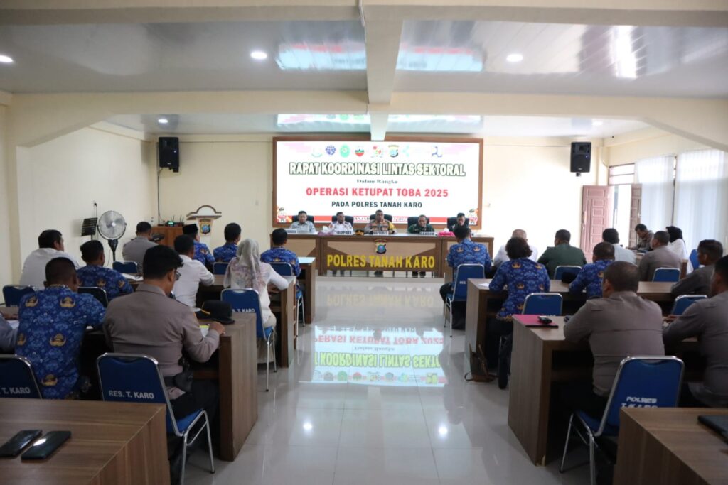 Menjelang pelaksanaan Operasi Ketupat Toba 2025, Polres Tanah Karo menggelar rapat koordinasi bersama berbagai instansi terkait di Aula Pur Pur Sage Tantya Sudhirajati Mapolres Tanah Karo, Senin(17/03/2025) pukul 09.00 WIB.